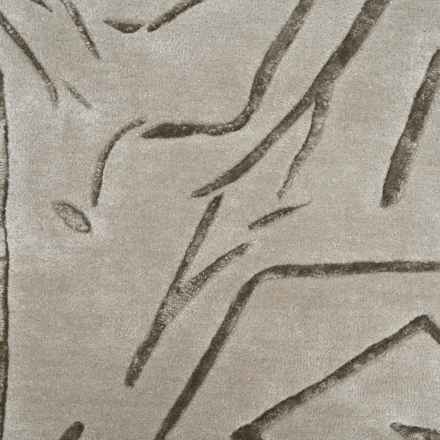 The elegant stone grey base paired with darker carved detailing gives the rug a refined, understated presence—ideal for modern, minimalist, and luxury interiors. The sculpted pile enhances both visual interest and tactile comfort, making it a versatile statement without overpowering the space.