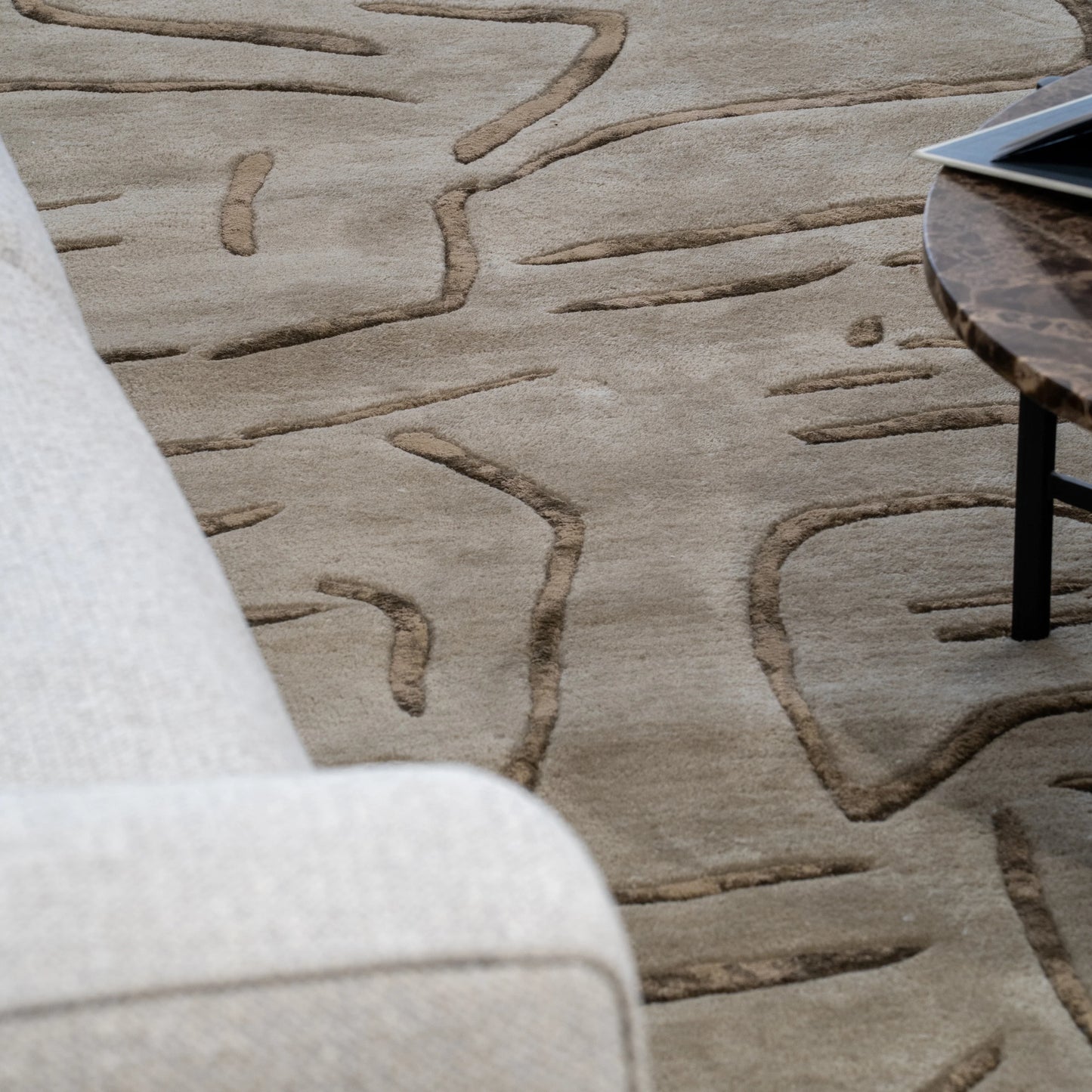 Bring subtle sophistication and artistic texture into your space with this hand-tufted abstract rug, crafted from premium New Zealand wool. Showcasing expressive sculpted linework inspired by free-form drawing, the design creates gentle movement and depth while maintaining a calm, contemporary feel.