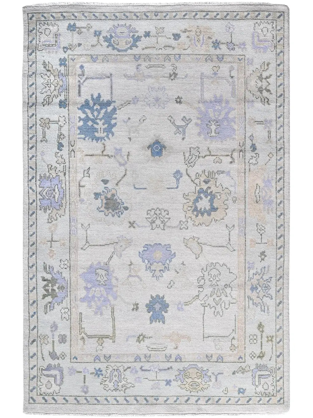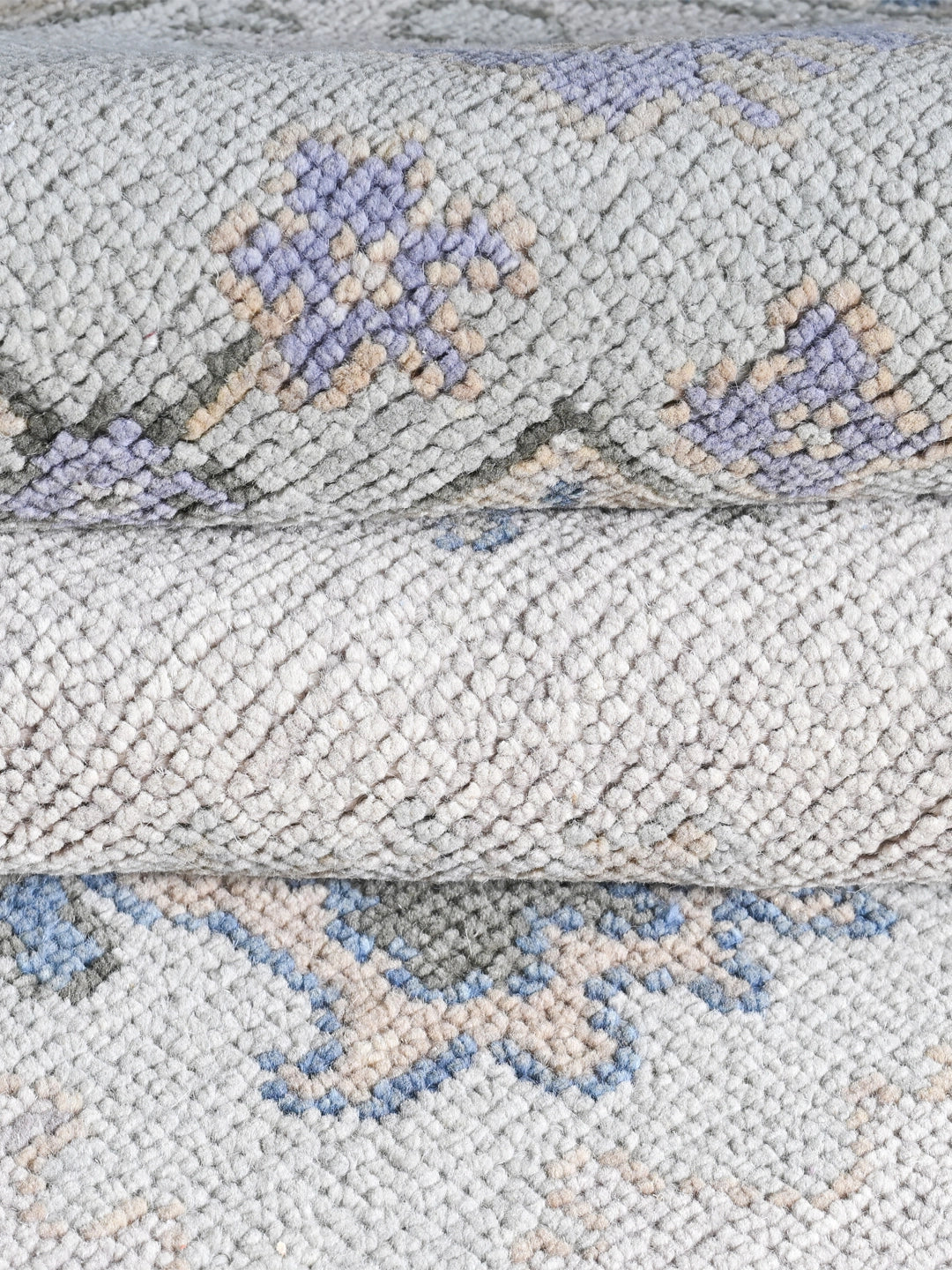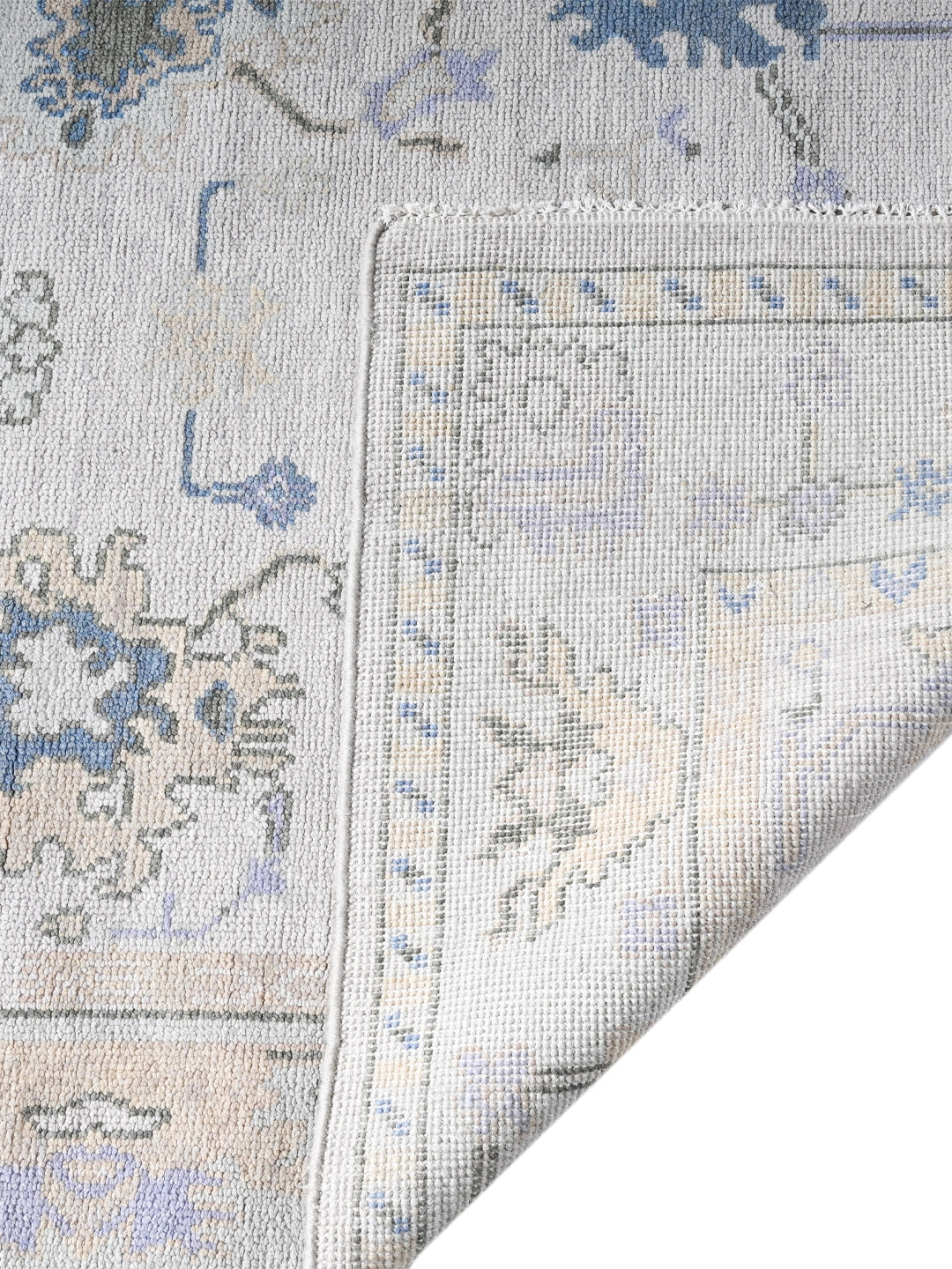 Bring timeless elegance into your interiors with this beautifully hand-knotted wool rug, meticulously crafted from 100% premium New Zealand wool. Inspired by classic floral motifs and reimagined in a soft contemporary palette, the rug features delicate patterns in muted blues, ivory, and subtle beige tones.