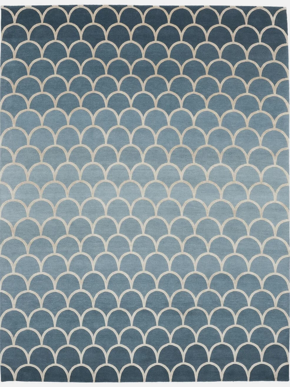 Gradient Scallop Blue Hand Knotted NZ Wool Rug