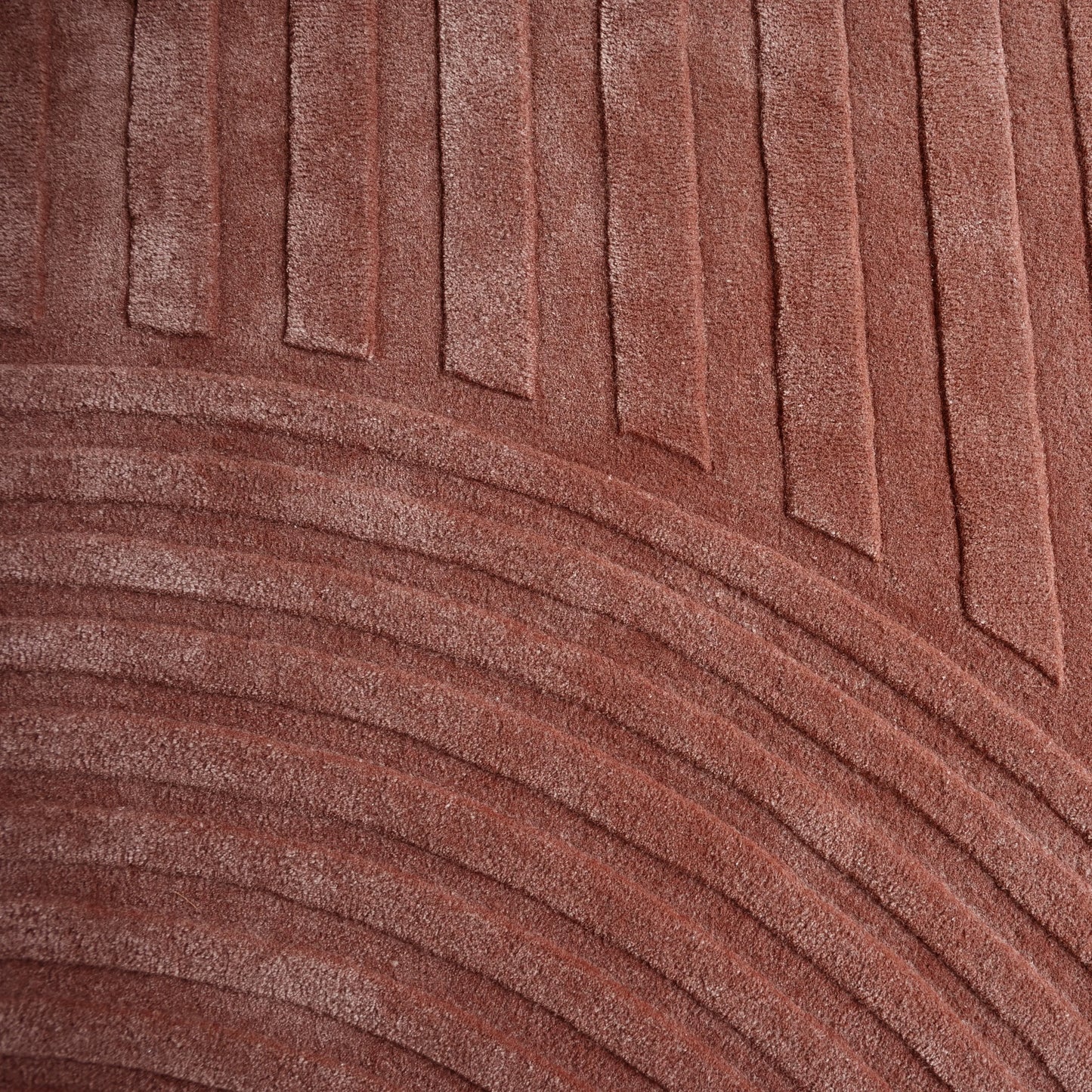 The sculpted pattern creates depth and visual rhythm, while the warm earthy tone adds richness and balance to the space. Designed as both a functional floor covering and a piece of art, this rug works beautifully in living rooms, bedrooms, reading corners, and creative interiors.