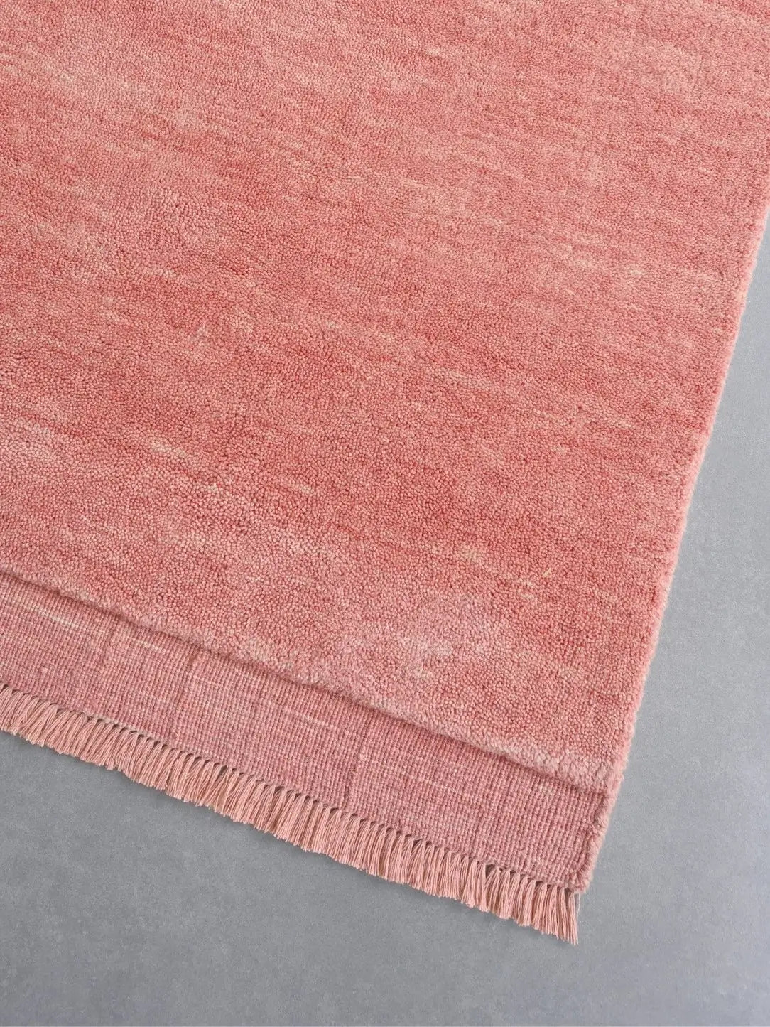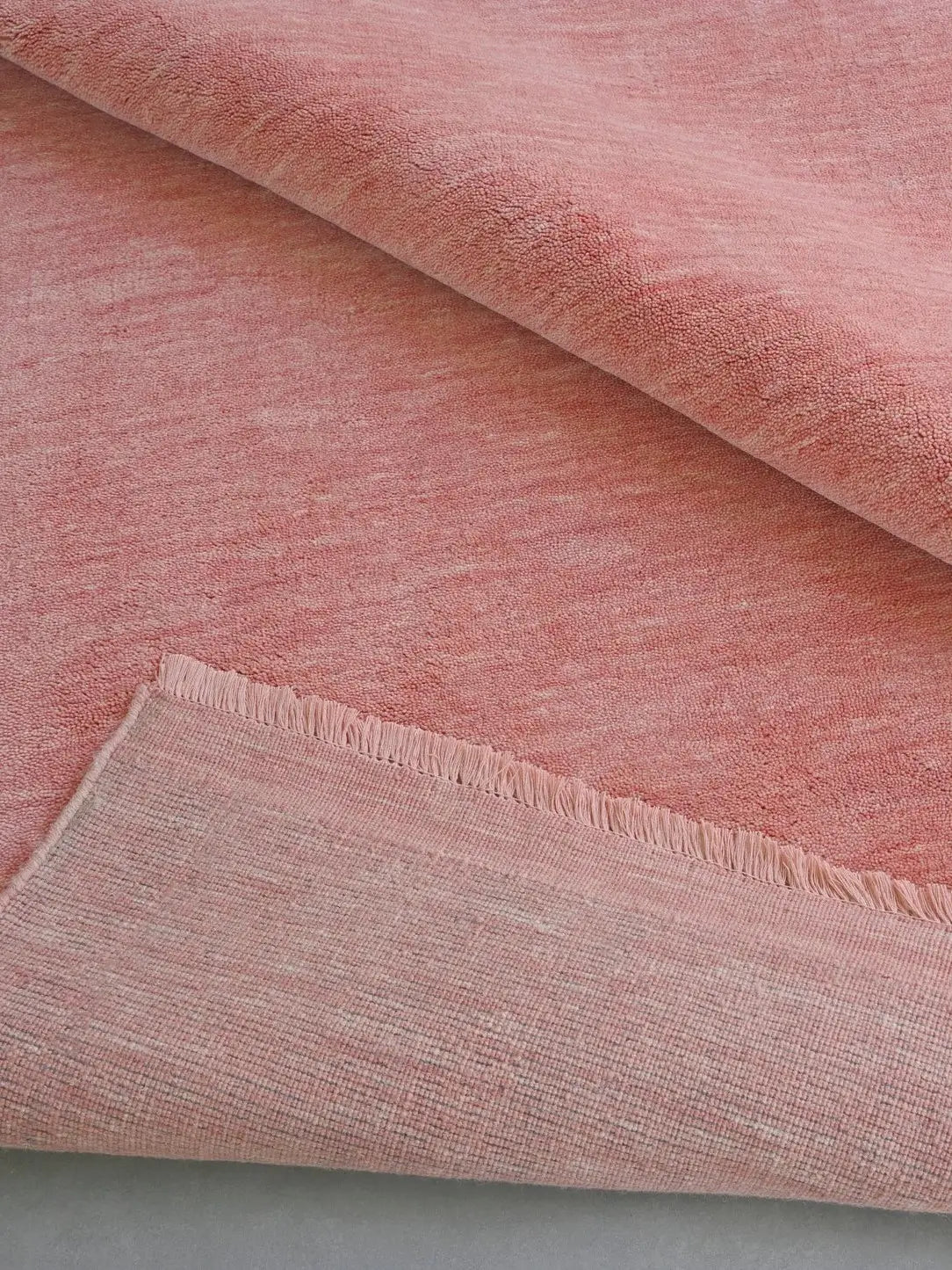 This pink handloom wool rug is crafted from premium New Zealand wool. This brings natural elegance and timeless comfort to your home. The handloom weaving technique gives the rug a soft, even surface with excellent durability, making it ideal for everyday living. Perfect for those who appreciate quality craftsmanship and understated design. This rug works beautifully in living rooms, bedrooms, and dining areas with modern, minimalist, and contemporary decor styles.
