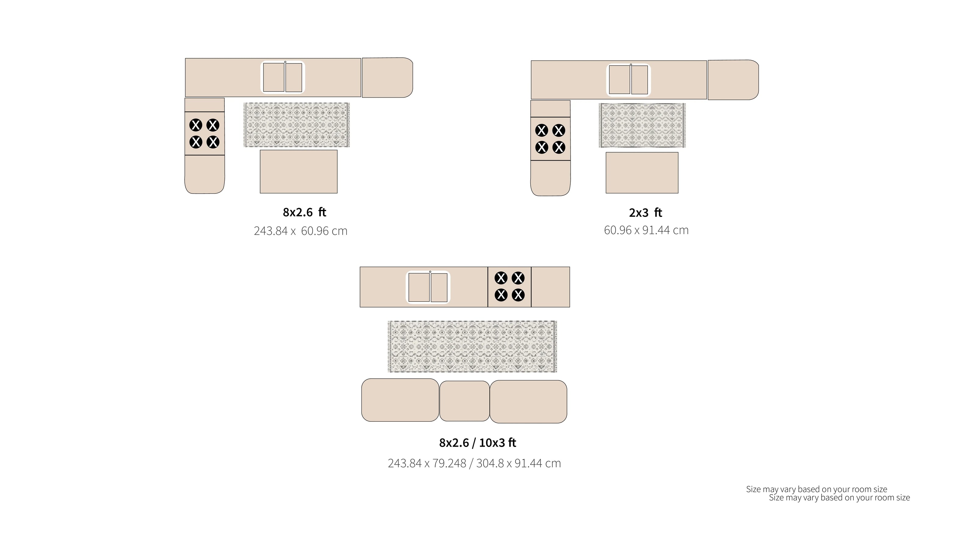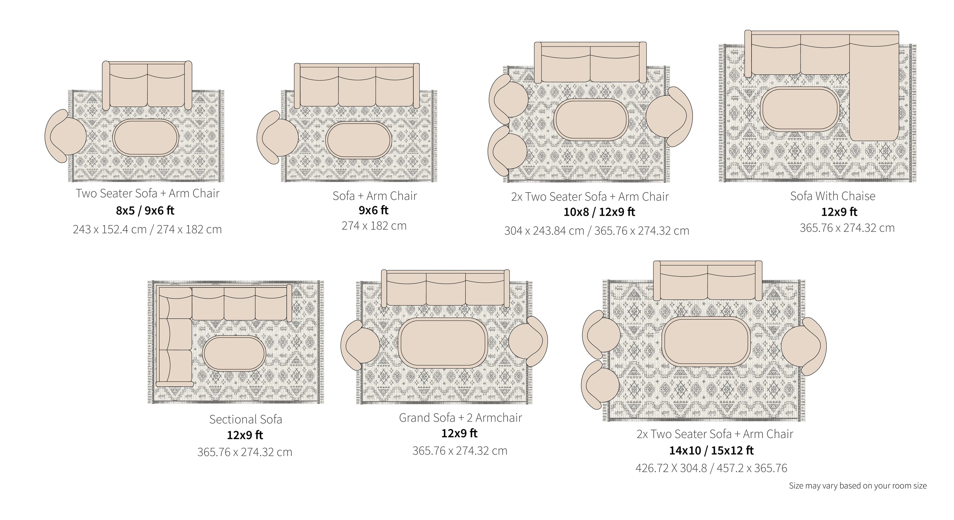 When looking for a living room rug, consider your furniture and take note of the various layout options. If it’s an open floor plan, the rug should help define the space and improve the acoustics.