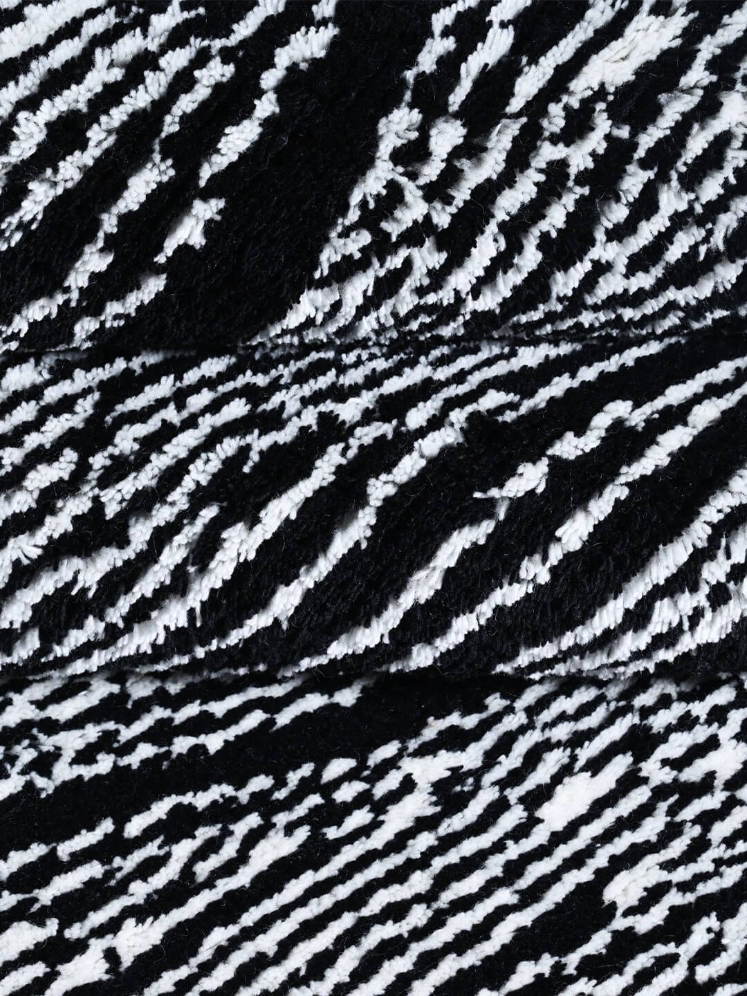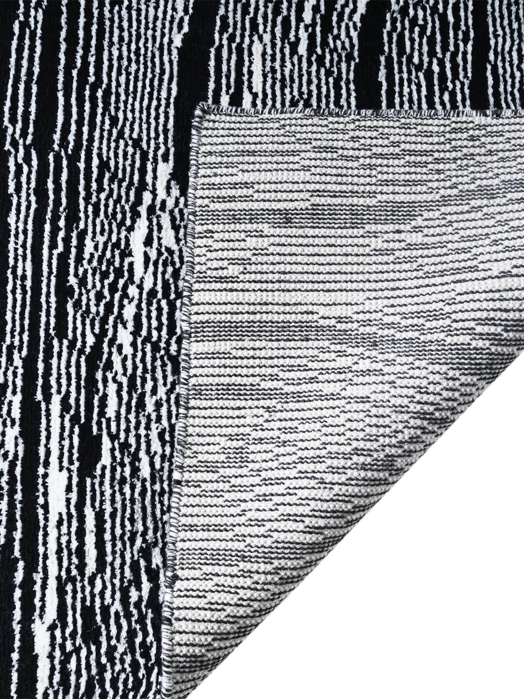 Expertly woven at 15000 knots per square inch (15 KPSI), this rug showcases fine craftsmanship, exceptional durability, and a dense, luxurious pile. The high-contrast palette and textured linear detailing make it an ideal statement piece for modern, minimalist, and design-forward spaces.