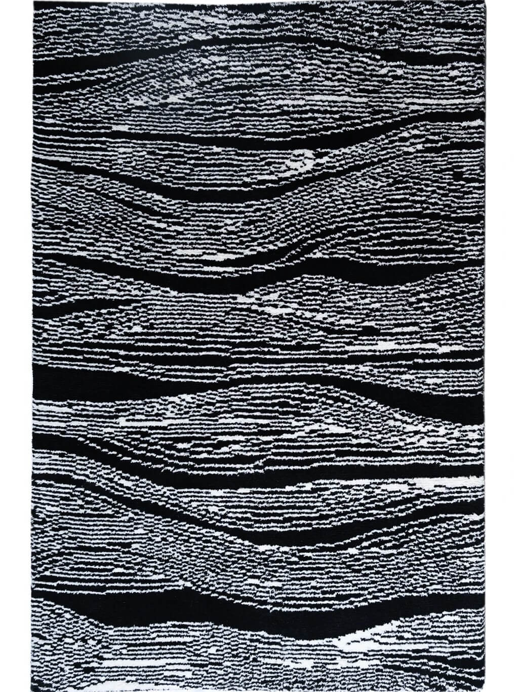 Add dramatic depth and modern character to your interiors with this striking hand-knotted wool rug, crafted from 100% premium New Zealand wool. Featuring layered wave-like patterns in bold black and soft ivory, the design creates a dynamic sense of movement inspired by natural landscapes and flowing textures.